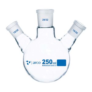 Flacon bouilleur à trois cols 250 mL – fond rond, col central 29/32 & cols latéraux 19/26