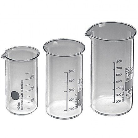 Bécher en verre borosilicaté 3.3 ayant une bonne résistance en utilisation normale.