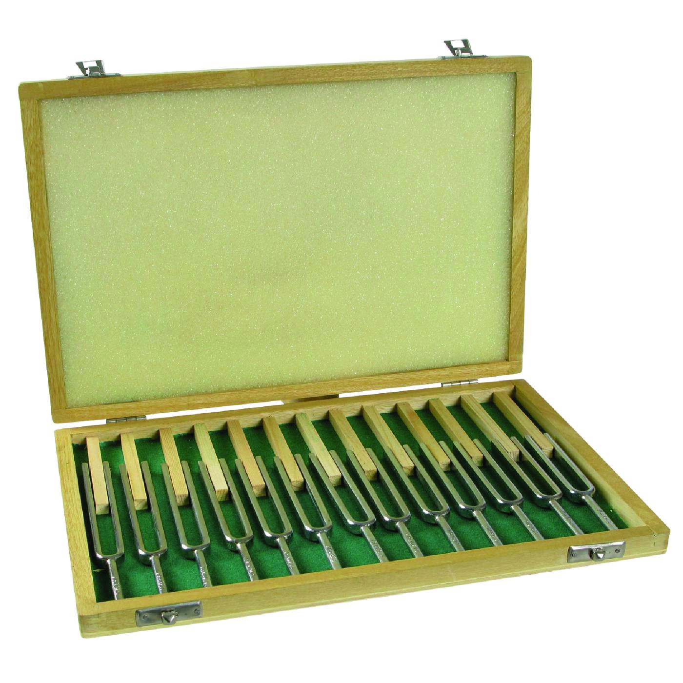 Coffret bois contenant 13 diapasons différents.