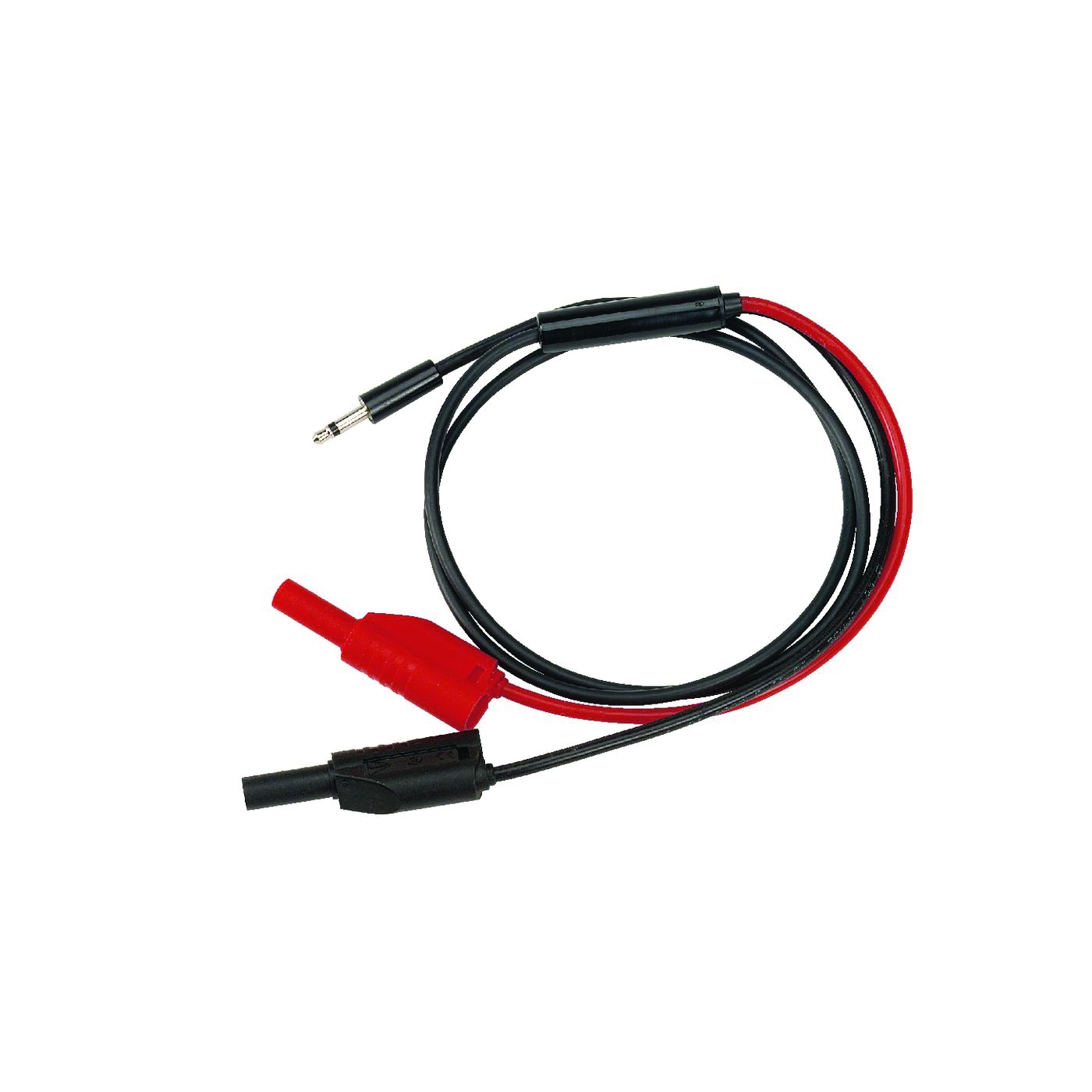 Cordons ayant une prise jack mâle ø 3,5 mm à une extrémité et deux fiches bananes de sécurité ø 4 mm à l’autre.