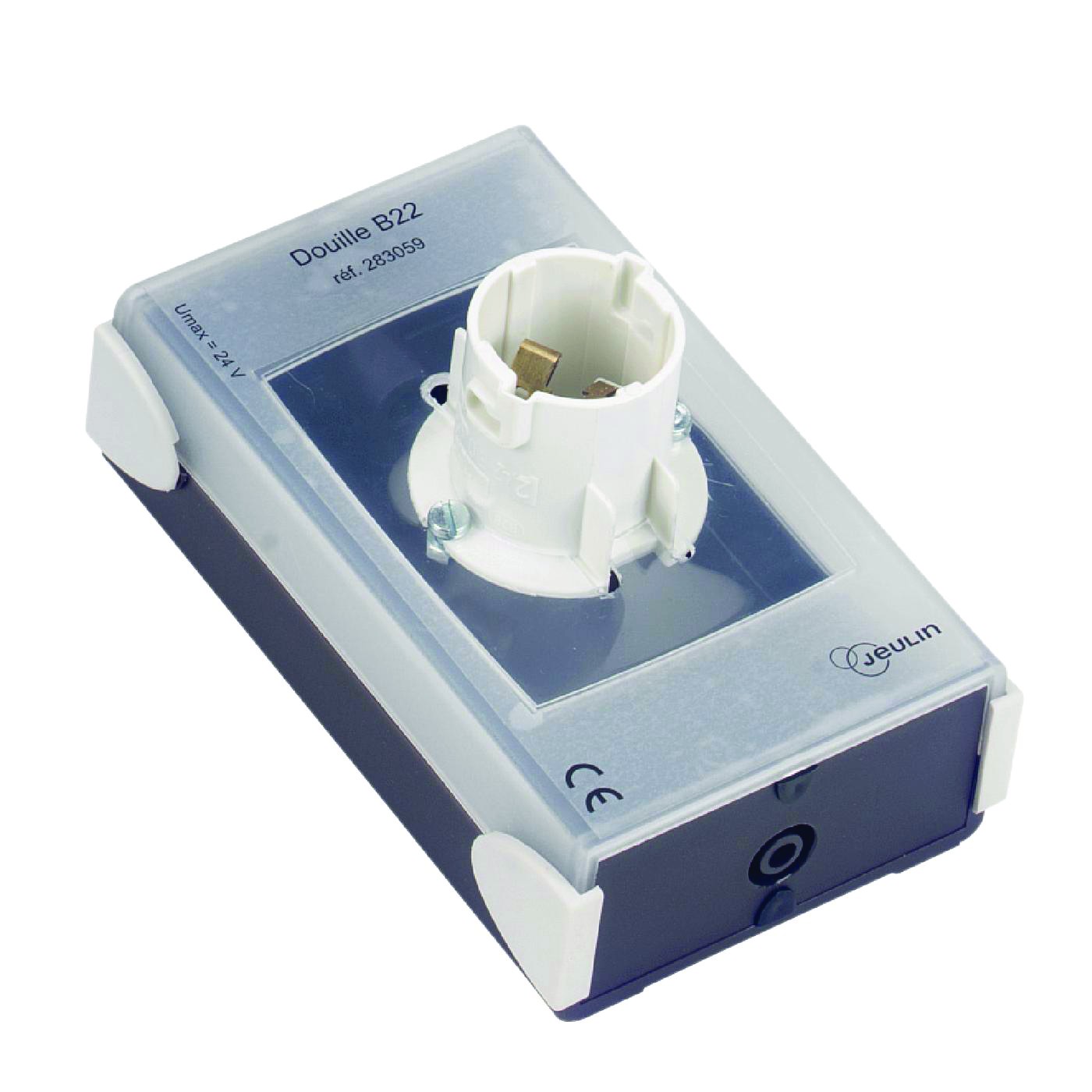 Caractéristiques techniques : Douille pour ampoule culot B22. Compatible avec les ampoules tungstène à baïonnette. Ampoule non fournie. Umax= 24 V Connexions : douilles de sécurité Ø 4 mm situées sur le côté du boîtier Index de couleur : pour repérer les pôles des composants polarisés Capot : en plastique transparent Dimensions du boîtier : 105 x 65 x 33 mm