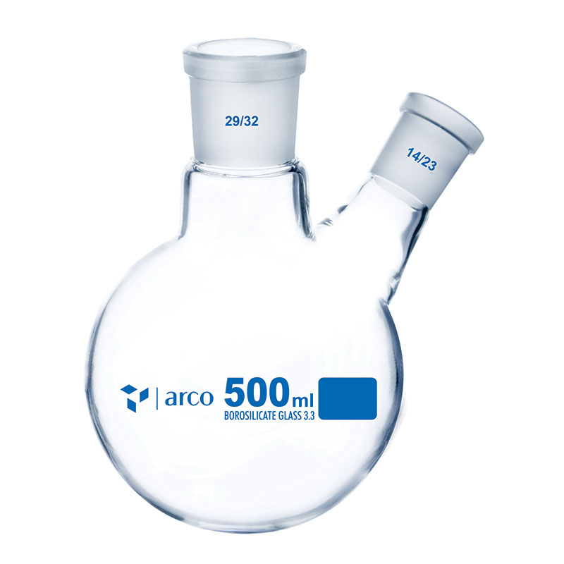 Flacon bouilleur à deux cols 500 mL – fond rond, col central 29/32 & col latéral 14/23