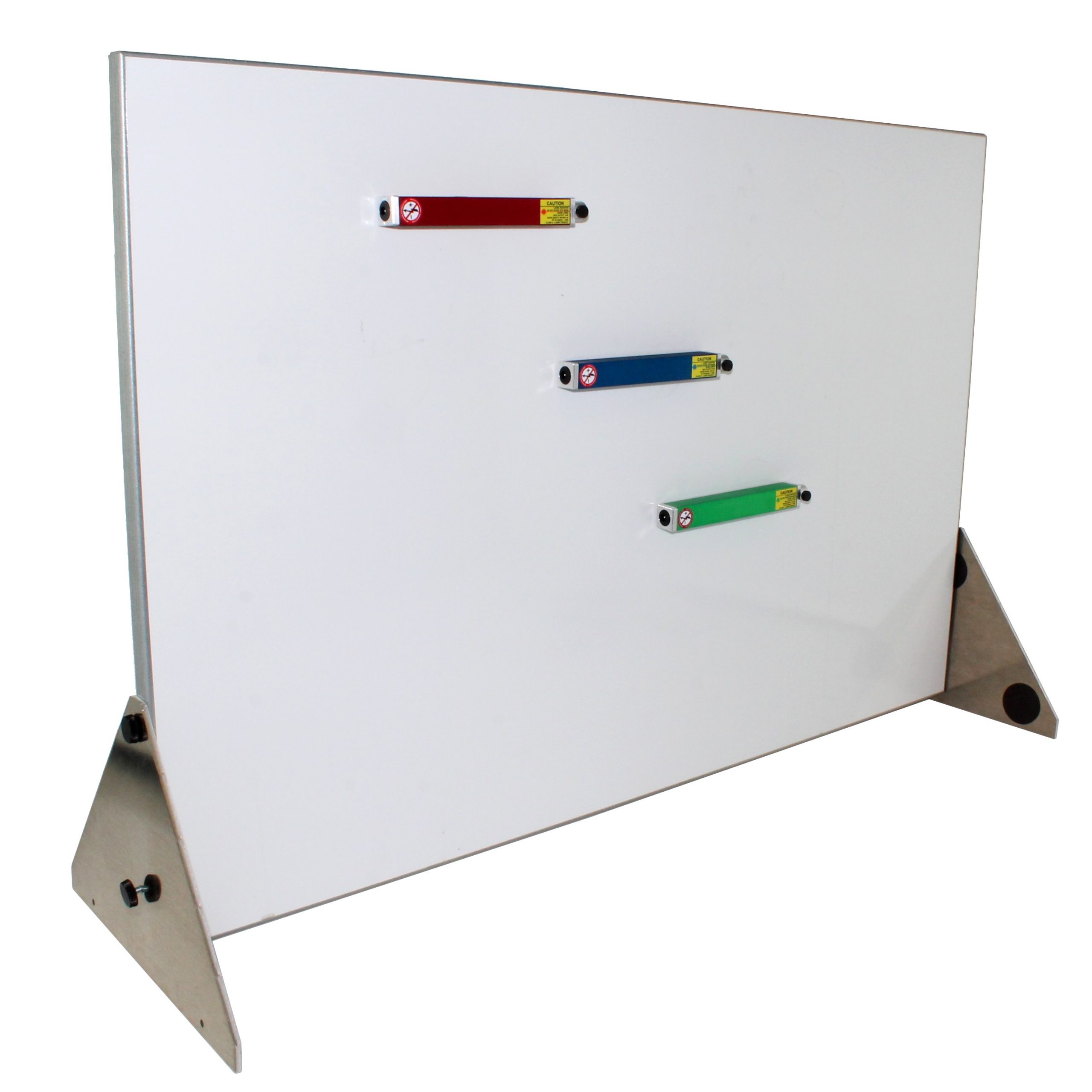 - Trois utilisations possibles: sur table – banc d’optique avec tige Ø10mm – tableau magnétique.