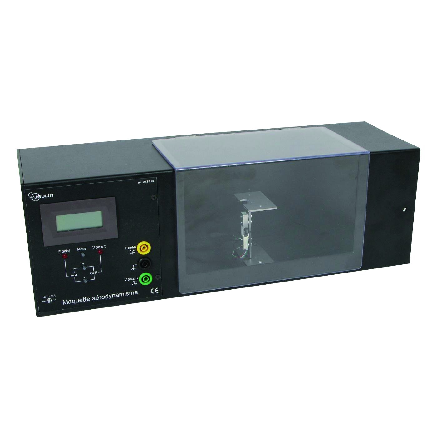 – d’un capteur à jauge de contrainte sur lequel repose un support d’objet permettant une mesure très précise de la force de trainée, dont la valeur est indiquée sur l’afficheur en mN.