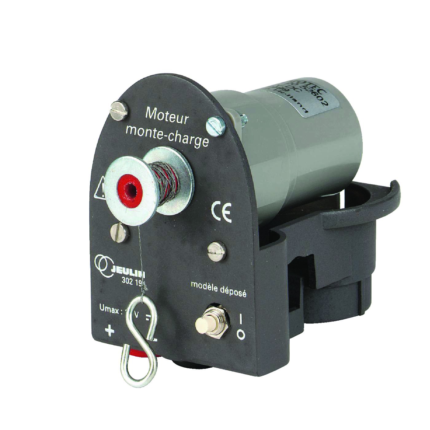 Une poulie solidaire de l’axe du moteur permet de monter une charge suspendue à un fil.