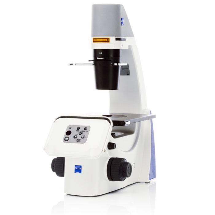 - Le microscope inversé s’adapte parfaitement dans votre hotte à flux laminaire – vous travaillez directement dans l’environnement stérile.