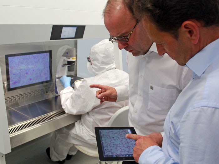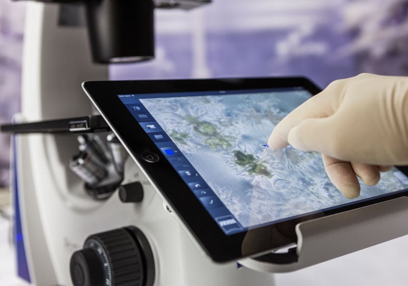 - Primovert HDcam intègre une caméra. Utilisez votre iPad et l’application d’imagerie gratuite Labscope, puis discutez de l’image sur le moniteur avec votre équipe. Capturez les images du microscope, annotez-lez et créez des rapports, puis partagez-les en toute simplicité et sans fil avec d’autres